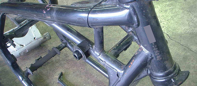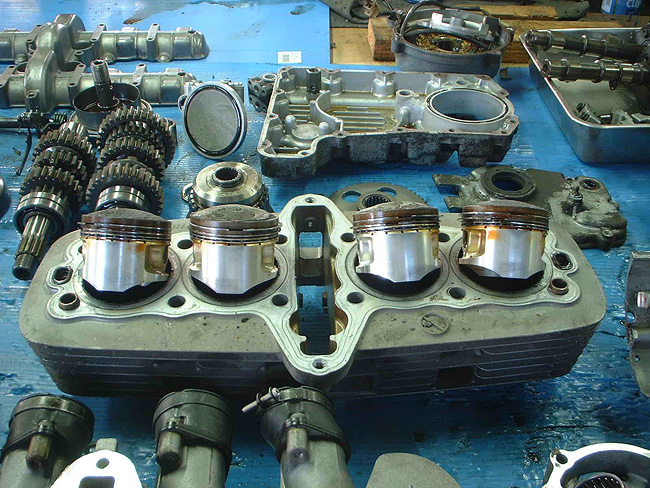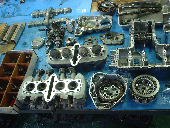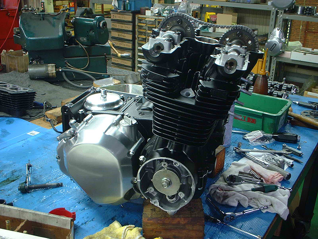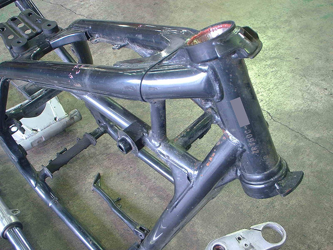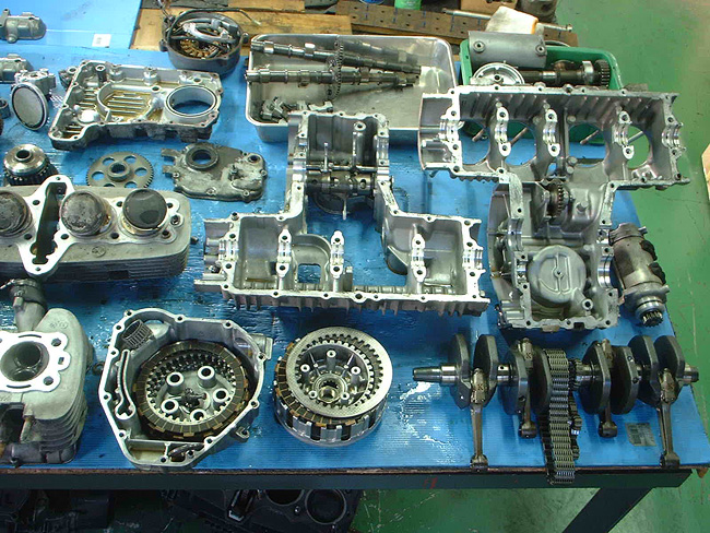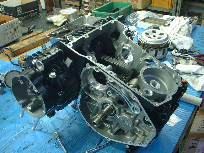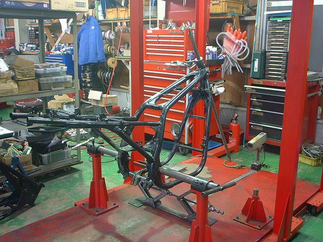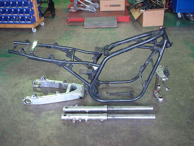 元々、エンジン不調によるオーバーホール依頼であったため、エンジンを先に分解。そのため、エンジンレス車体となった。