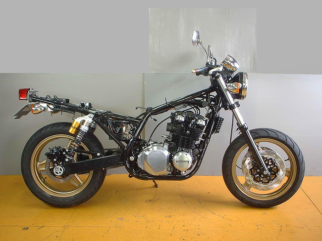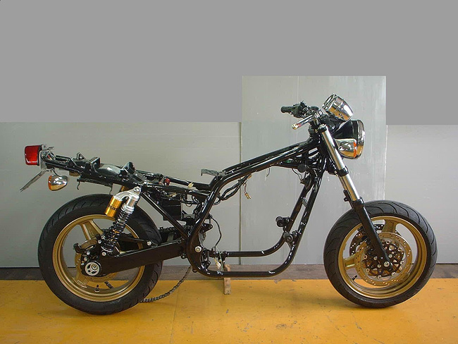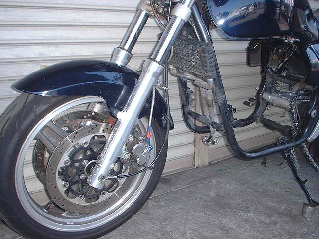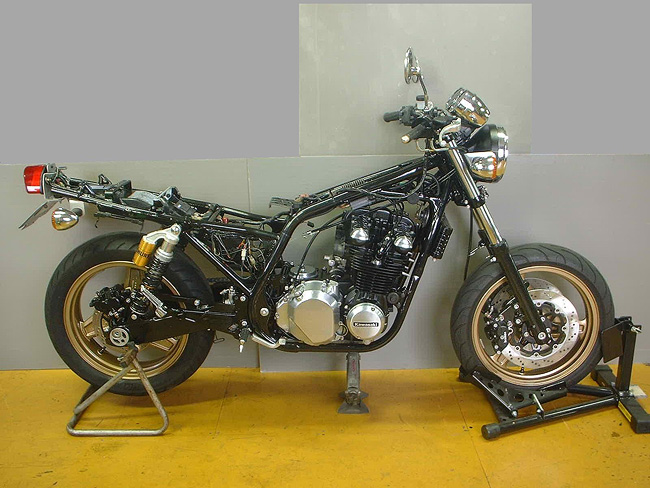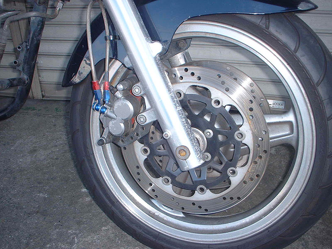 10年以上メンテナンスしていなかったため、フロントキャリパは使用不能のためブレンボキャストにコンバート。リヤキャリパはオーバーホール。ボディはブラックペイント仕上げ。