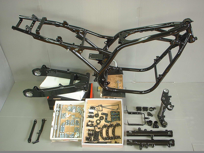 ガンメタ色フレームをブラックパウダーペイントに変更。