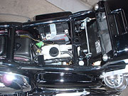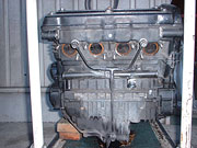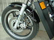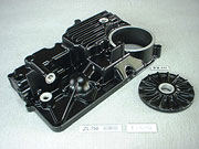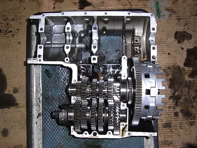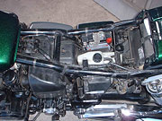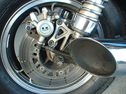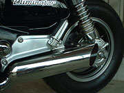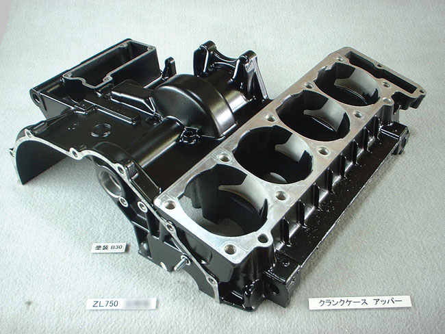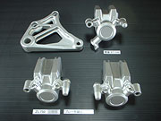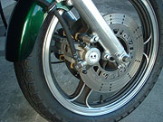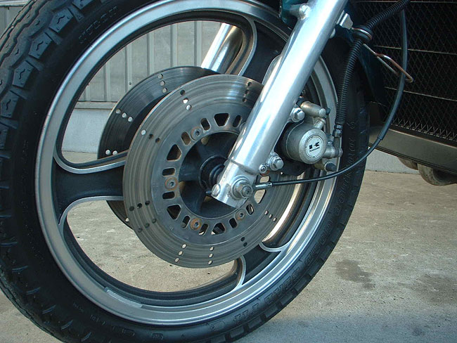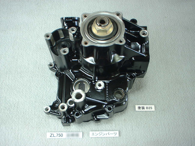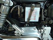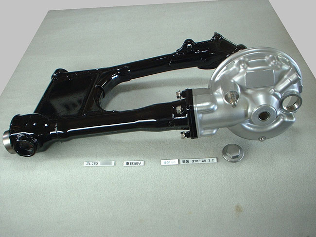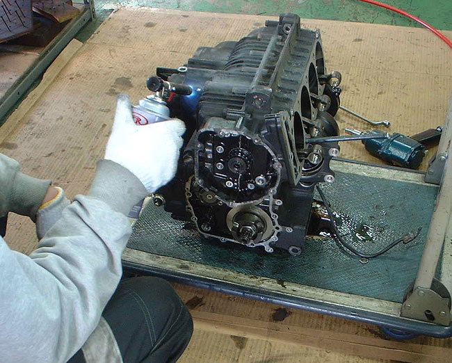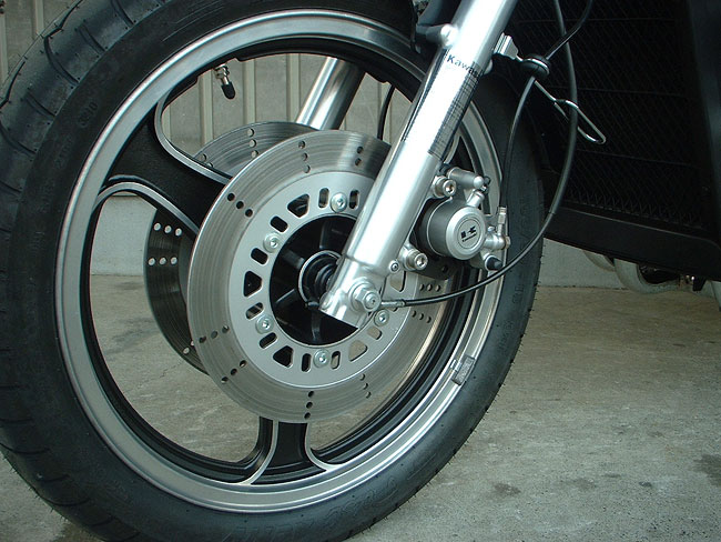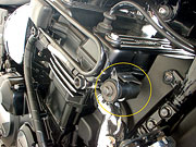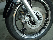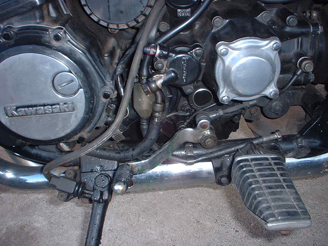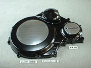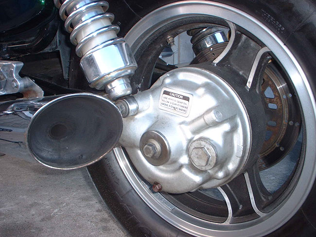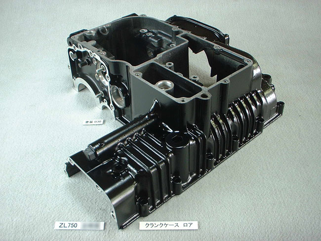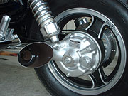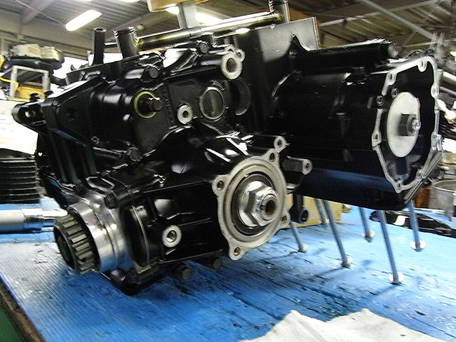 こだわりのボトムケース。コーションシール、ブレーキホースは前後ともステンレスブラックで製作。