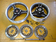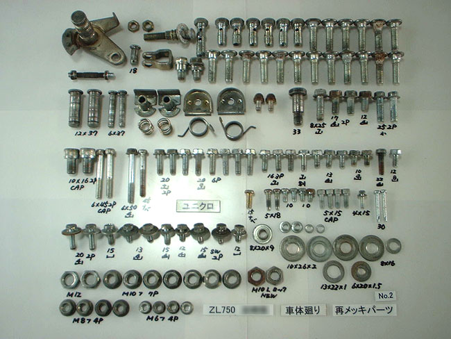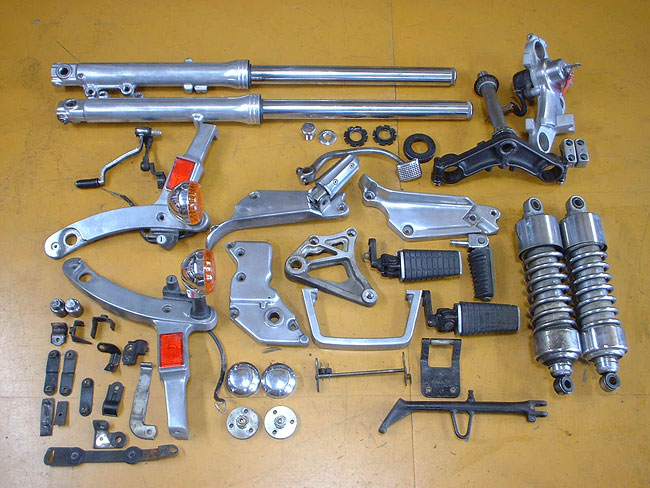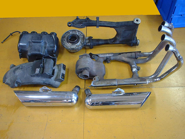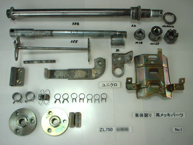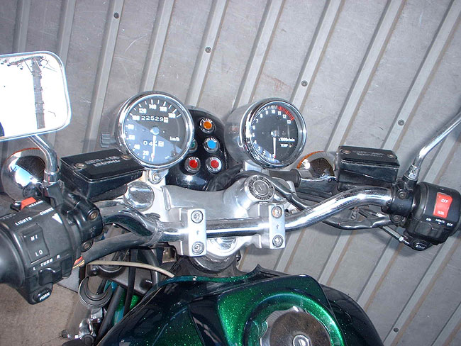 クラッチブレーキマスターはZEP1100用。ハンドルスイッチはZZR1100用。タコ、スピードメーターは欠品のためリビルド再生する。