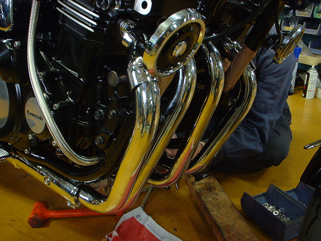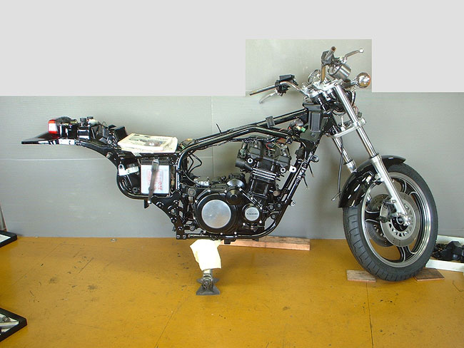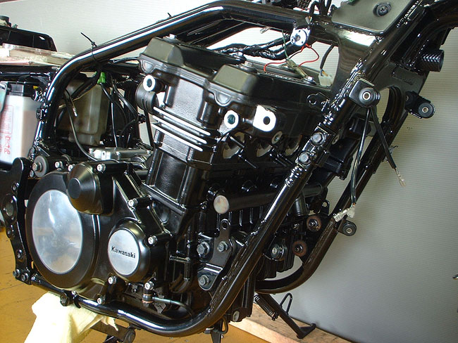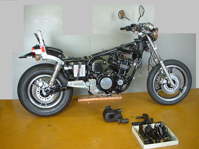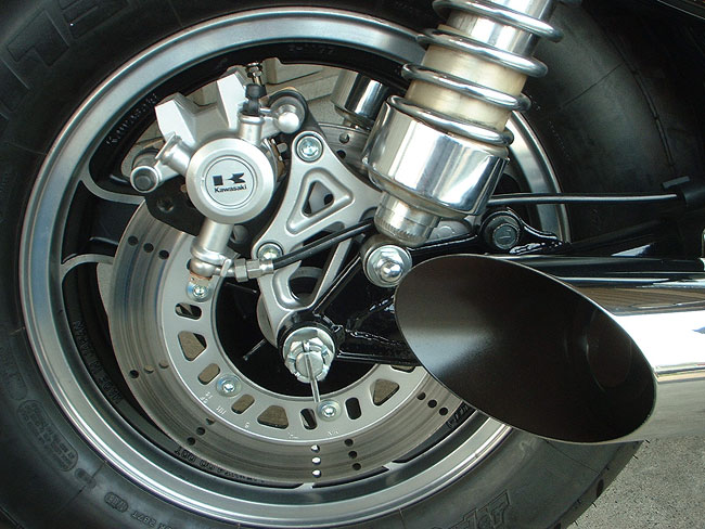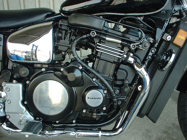 ガソリンタンクマークはお客様の要望であえてZL900の角度にする。バックミラーは純正品。