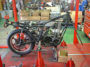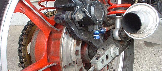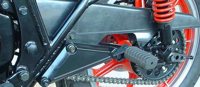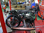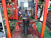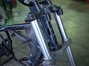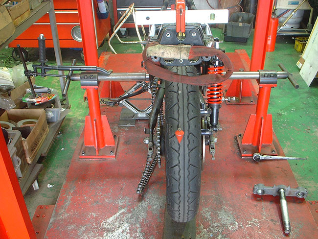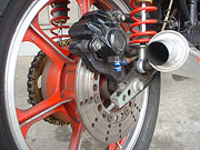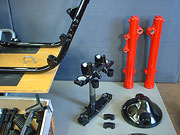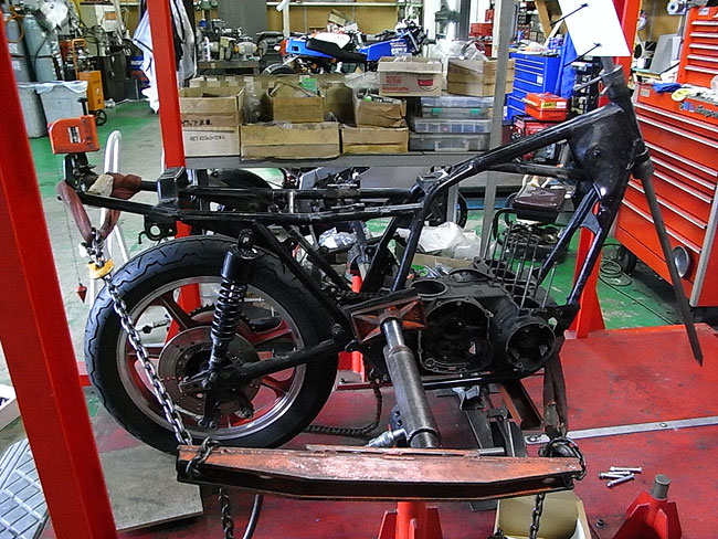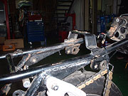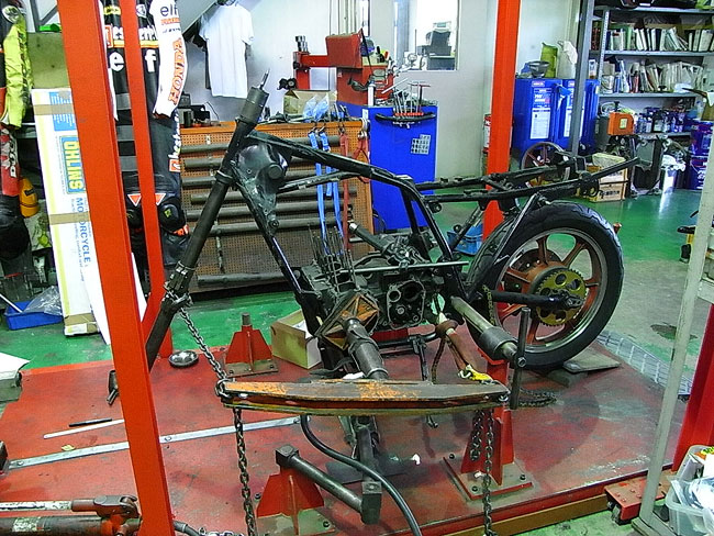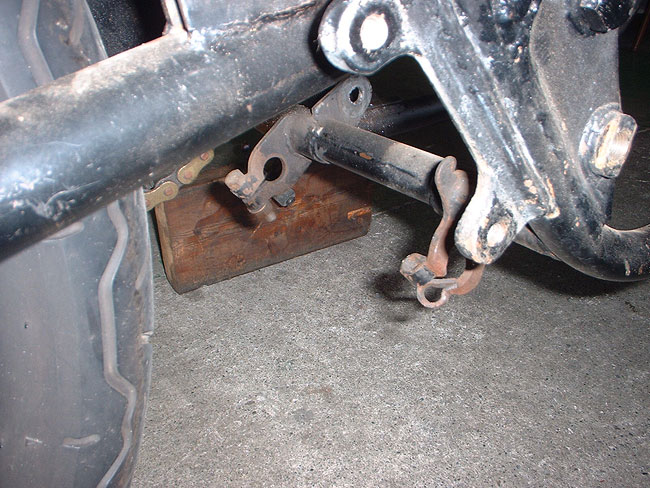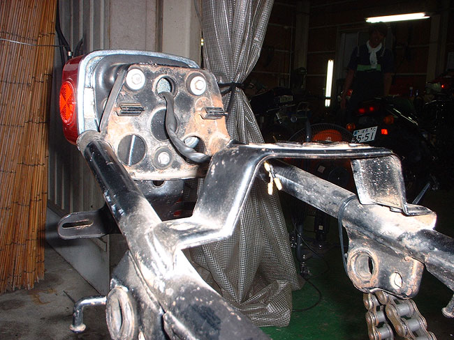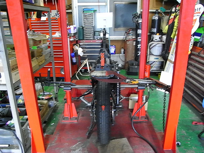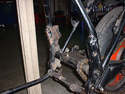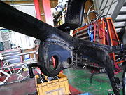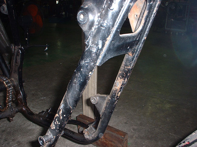 装着していたマフラーに干渉するため、曲げてあった、センタースタンドクランプ。