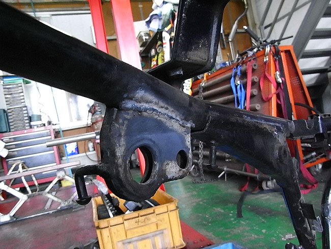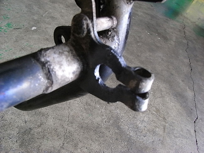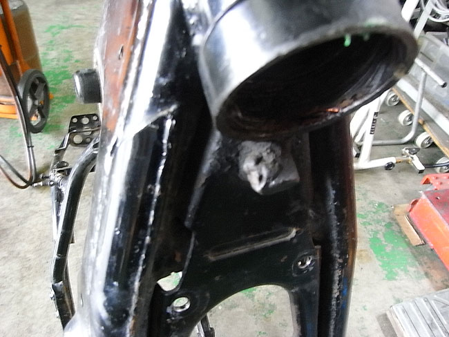 ステアリングストッパーに修復歴有り。(ひどい!)オイルクーラー取付のためM8の穴があいていた。O/C不要とのことで溶接穴埋めをする。