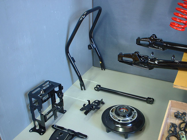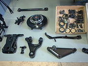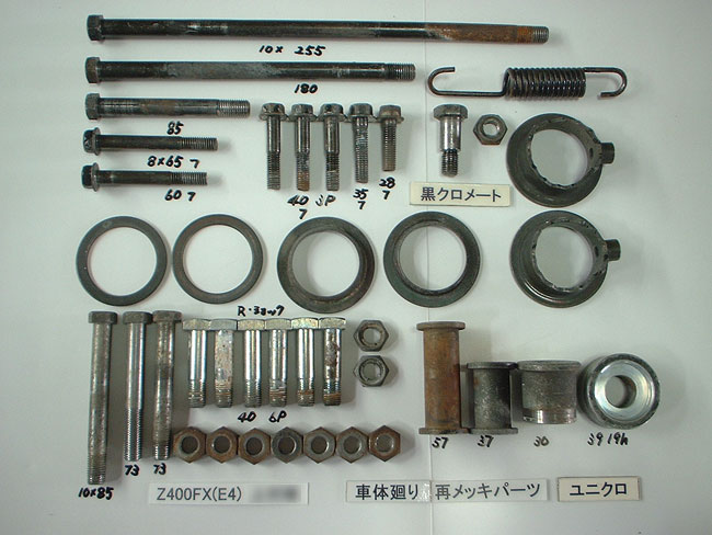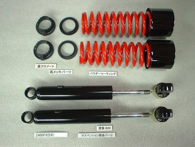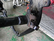 非分解のサスであるがお客様の要望によりあえて分解ペイントする事に。 バンプラバーはくだけていたため12Φ用の他車種流用する。