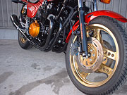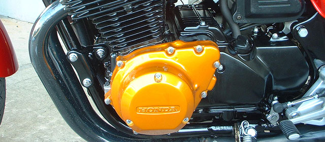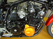 左エンジンカバー、パルシングカバー、ダイナモカバー。CB1100R風にキャンディー塗装。