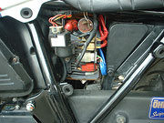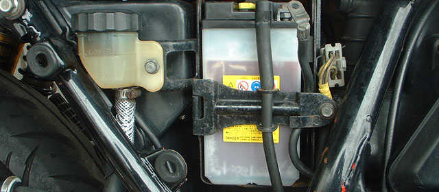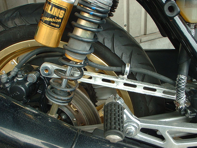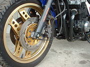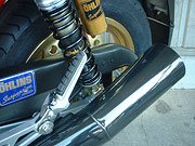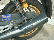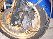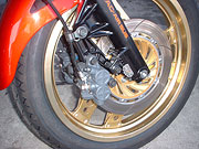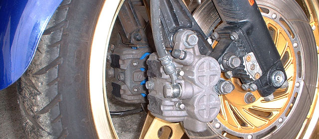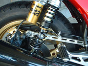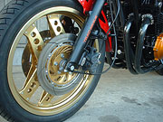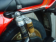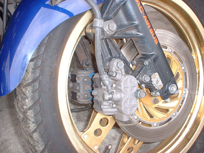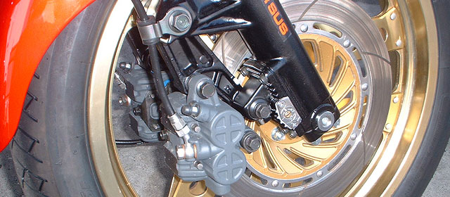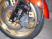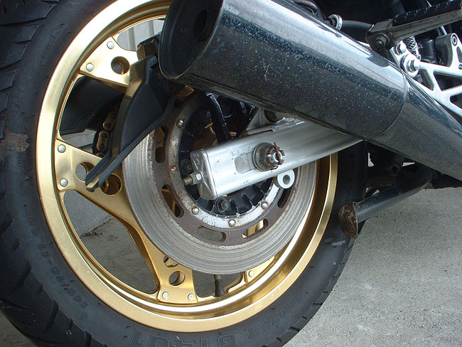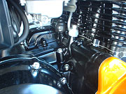 ブレーキキャリパー、ブラケット、ホースジョイント、リヤマスターを純正風に塗装。