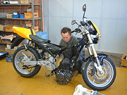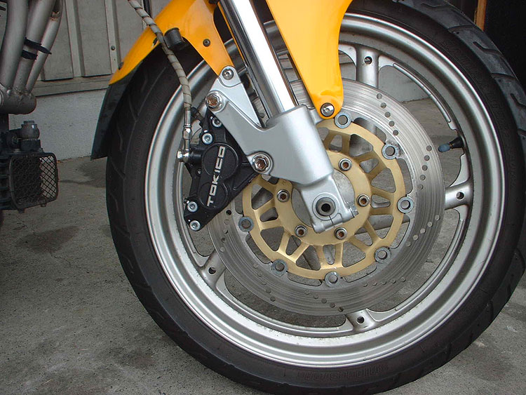 隼1300のフロントキャリパ持ち込み。キャリパピストンがアルミ製。