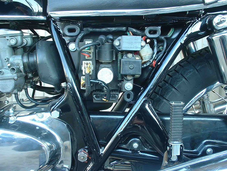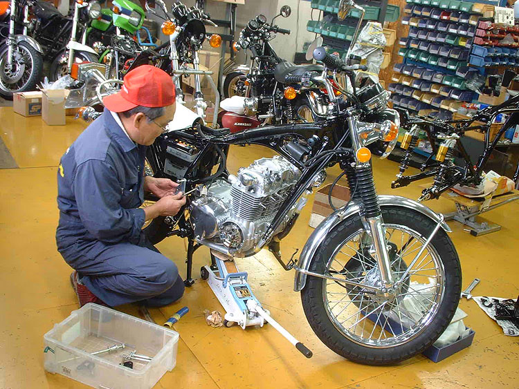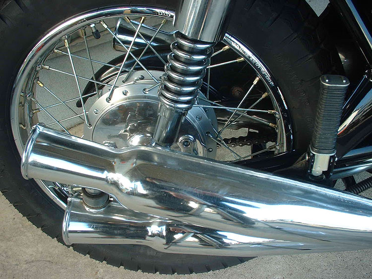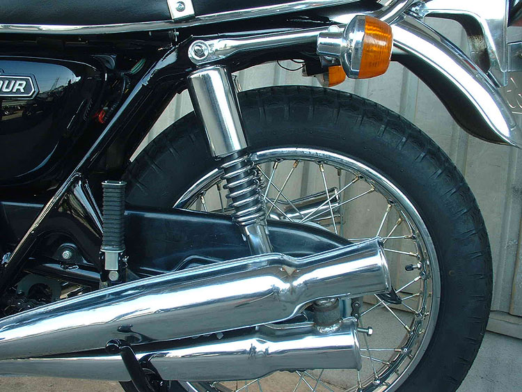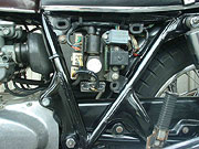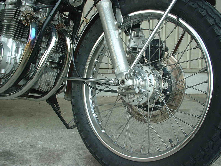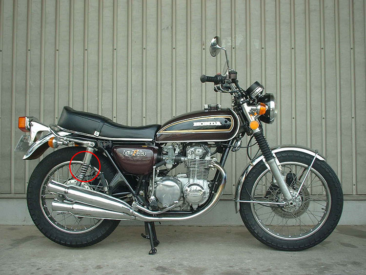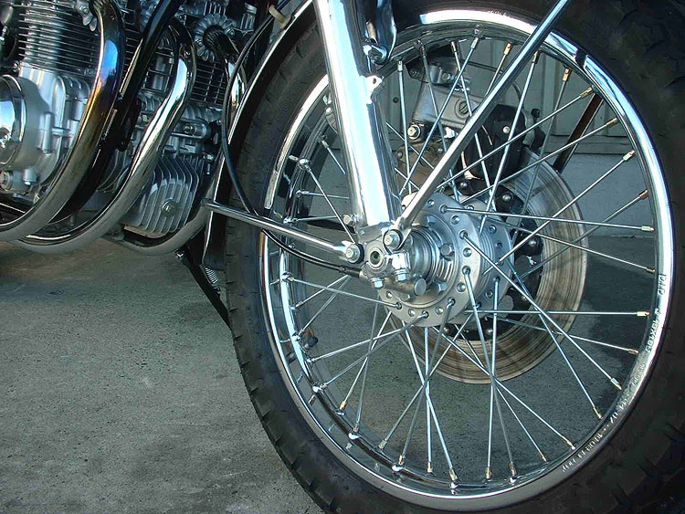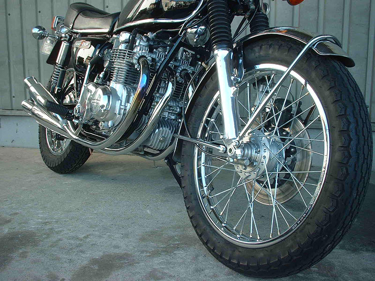 リアサスペンションはCB750K用に交換。フロントフォークはオーバーホール。