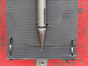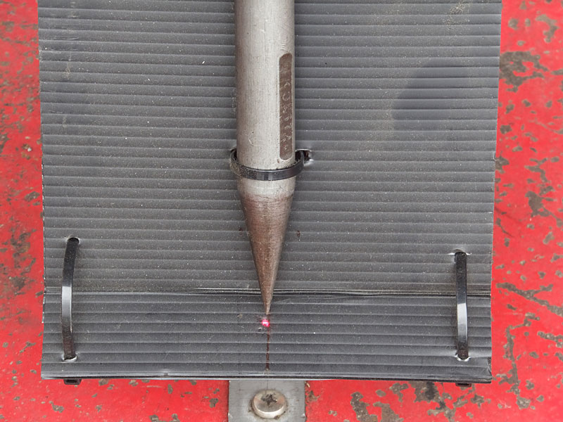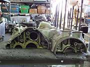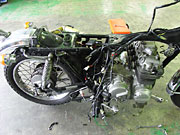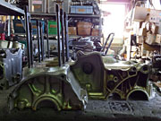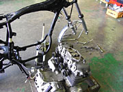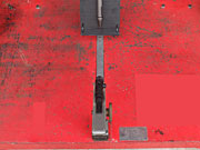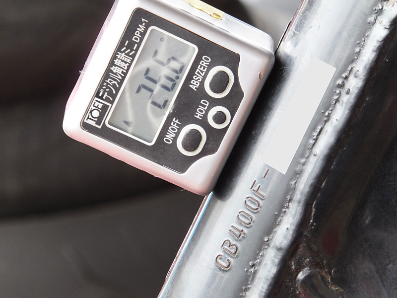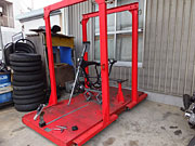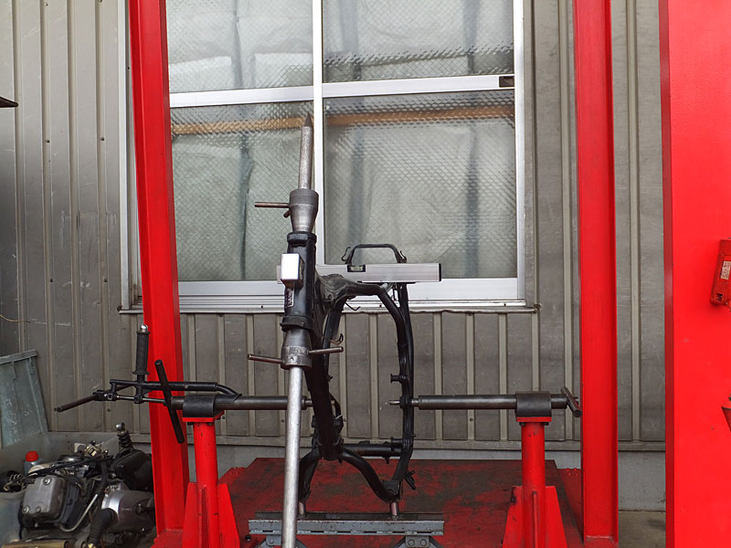 現在、フレーム修正機室建設中につき仮設所にて点検測定