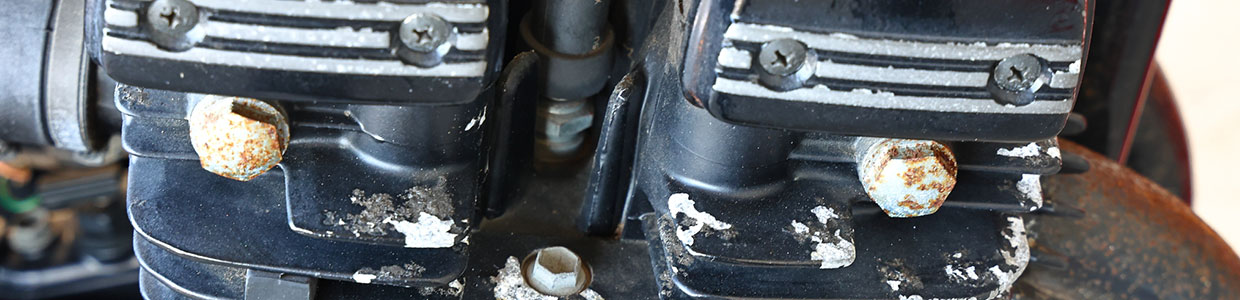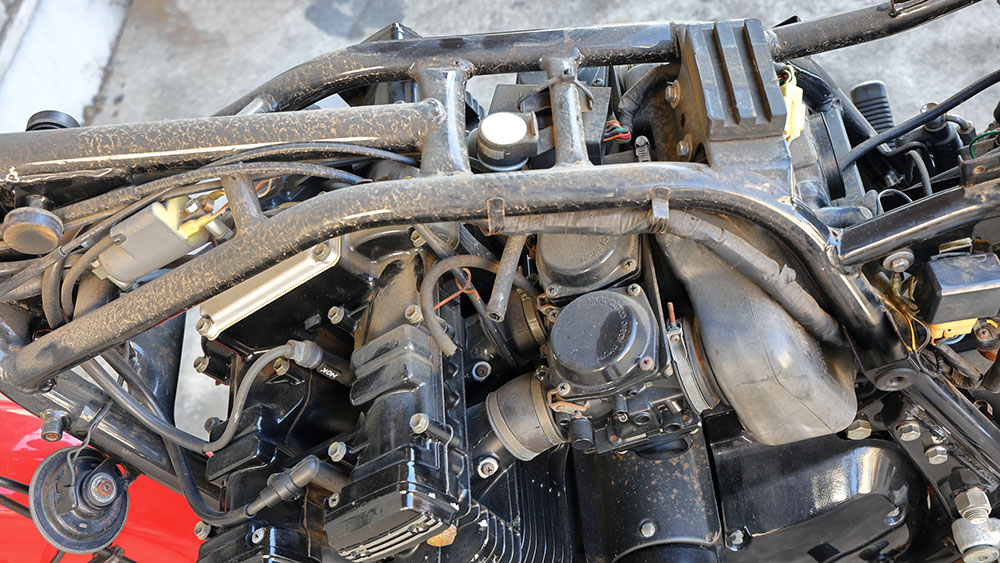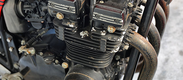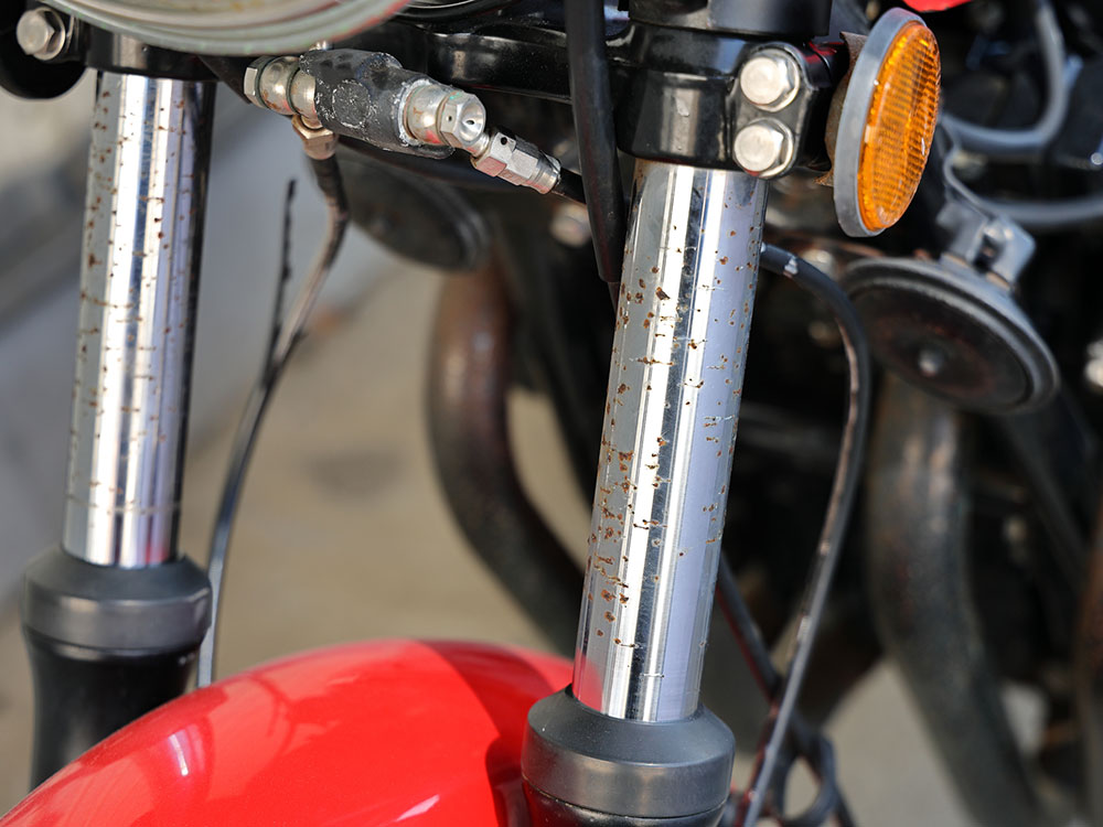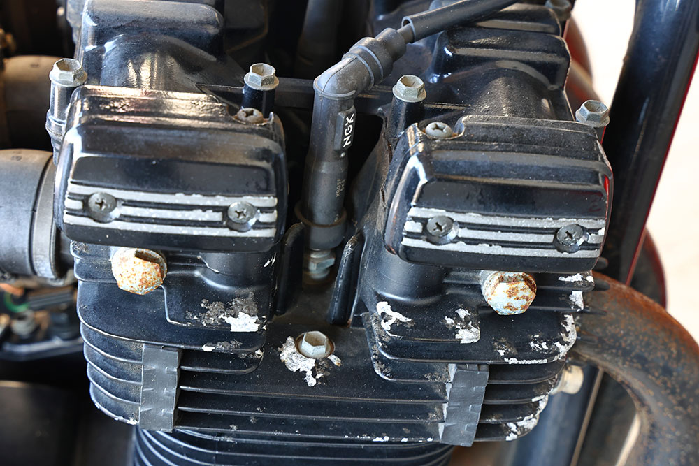 エンジン周りはもちろん、スチールステンレス部まで、サビと腐食に犯されている。